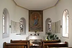 Im Chor hängen auf beiden Seiten Namenstafeln mit Gefallenen des Ersten Weltkriegs. Dazu wurden auch in die Chorfenster Glasmalereien mit betenden Soldaten unterm Kreuz und Aufnahme eines Gefallenen durch Christus eingefügt. Über dem Eingang wurde der Schriftzug „In Dankbarkeit die Gemeinde Arzheim“ eingemeißelt. Nach dem Zweiten Weltkrieg kamen weitere vier Namenstafeln hinzu.