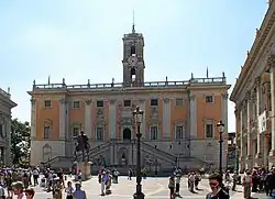 Der Kapitolsplatz, wie wir ihn heute kennen, hat nichts mehr mit der Funktion und der daraus abgeleiteten Bedeutung des Kapitols als religiöses Machtzentrum zu tun. Der zwischen den zwei Hügelkuppen gelagerte Platz ist ein Beispiel für einen Platz, der nach neuzeitlichen, also nicht nach römisch-antiken Plänen gestaltet wurde. Die Neugestaltung des Platzes und der umliegenden Gebäude wurde von Michelangelo entworfen. Der Platz unterlag damit einem ganzheitlichen Entwurfskonzept, das den Beginn des Wiederaufstiegs der Stadt kennzeichnete. Nach dem „Sacco di Roma“ (1527) lag das Kapitol in Trümmern. Papst Paul III. aus dem Haus Farnese genierte sich anlässlich des Besuches von Kaiser Karl V. im Jahr 1536 über den Zustand des Platzes, weshalb er Michelangelo um eine Neugestaltung der Piazza bat. Michelangelo erlebte allerdings nur noch die Fertigstellung der Rampe (Cordonata).