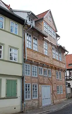 Das zweigeschossige Fachwerkhaus entstand in seinem Kern um 1700. Im Erdgeschoss befindet sich ein Zwischengeschoss. In der Zeit um 1800 wurde das Gebäude im Stil des Klassizismus umgebaut. Die Fensterfaschen waren mit Stuck gestaltet. Darüber hinaus bestanden massive Sohlbänke.