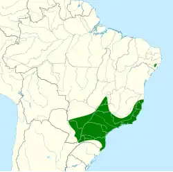 Die Erstbeschreibung der Kappenkreischeule erfolgte 1822 durch Coenraad Jacob Temminck unter dem wissenschaftlichen Namen Strix atricapilla. Als Verbreitungsgebiet gab er Brasilien basierend auf dem Entdecker der Art Johann Natterer an.[4][A 1] 1842 führte Johann Jakob Kaup die Gattung Megascops ein.[5] Der Begriff leitet sich von μεγας, μεγαλη megas, megalē, deutsch ‚groß‘ für σκωψ, σκωπος skōps, skōpos, deutsch ‚kleine Eule mit Ohren‘ ab.[6] Der Artname »atricapilla« ist ein Wortgebilde aus lateinisch ater ‚schwarz‘ und lateinisch capillus ‚Hauthaar‘.[7] Alfred Laubmann hatte für sein Werk Die Vögel von Paraguay keinen Balg zur Verfügung. In der Literatur verwies er auf Charles Barney Cory, der die Art als nachgewiesen in Paraguay bezeichnete.[8] Das Departamento Alto Paraná[9] durch Arnaldo de Winkelried Bertoni betrachtete er zwar ebenfalls als Nachweis, doch betont Laubmann, dass Bertoni extra hervorhob vom argentinischen Ufer (margen Argentinia del Río).[10] Cory erwähnte außerdem Scops santae-caterinae Salvin, 1897[11] als Synonym zur Nominatform[8], ein Name der sich auf die Provinz Santa Catarina bezieht und der heute als Langohr-Kreischeule geführt wird. Ephialtes argentina Lichtenstein, 1854[12] und Megascops alagoensis Dantas, Wecksein, Oliveira, Catanach & Aleixo, 2021[13] werden heute ebenfalls als Synonyme betrachtet. Schon 2006 wiesen Sônia Aline Roda und Glauco Alves Pereira auf eine isolierte Population in Alagoas hin.[14]