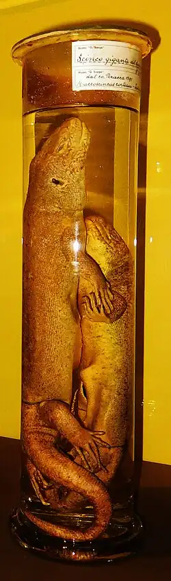 - ↑ Andreone, Franco; Gavetti, Elena 1998. Some remarkable specimens of the giant Cape Verde skink, Macroscincus coctei (Dumeril & Bibron, 1839), with notes about its distribution and causes of its possible extinction. Italian Journal of Zoology (Modena) 65 (4): 413–421