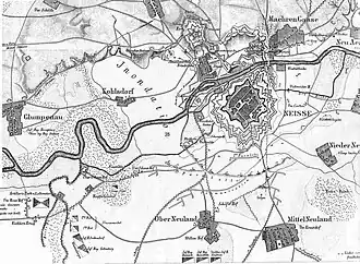 Nachbarorte von Karłów sind im Westen die Stadt Nysa (Neisse), im Osten Konradowa (Konradsdorf) und im Süden Dolna Wieś (Nieder Neuland).