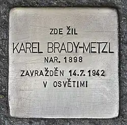 Karel und Markéta Brady-Metzl hatten zwei Kinder – Jiří (geboren am 9. Februar 1928) und Hana (geboren am 16. Mai 1931). Im Jahr 1939 wurde Karel denunziert, von der Gestapo verhaftet und musste für zwei Monate nach Jihlava ins Gefängnis. Die Ausgrenzungsgesetze, die ab 1939 galten, trafen diese Familie, als einzige Juden im Ort, besonders hart – insbesondere die zwei Kinder, die jetzt nicht mehr die Schule besuchen durften. Im März 1941 wurde Markéta verhaftet und ins KZ Ravensbrück deportiert – ihr Bruder war nach Belgien geflohen und hatte ihr und ihrem Mann Geld geschickt. Nach der Besetzung Belgiens wurden Helfer verhaftet, bei ihrem Bruder fand sich eine Liste der Spender und der Beschenkten, auf der auch ihr Name aufschien. Am 23. November 1941 wurde auch Karel verhaftet und kam wiederum in das Gefängnis nach Jihlava. Wenige Stunden nach seiner Verhaftung holte der Schwager Karels, Ludvík, die Kinder zu sich. Er war Katholik und hatte Karels Schwester geheiratet. Die Kinder sollten bei ihm und seiner Familie auf dem Land untertauchen. Dies gelang nicht, einer NS-Anordnung zufolge mussten Hana und Jiří am 14. Mai 1942 zum Deportationszentrum Třebíč gebracht werden. Vier Tage später wurden die Kinder ins Ghetto Theresienstadt gebracht. Derweilen musste Karel Brady-Metzl in Haft Parkettböden polieren. Er genoss aber im Gefängnis von Jihlava relative Freiheit und durfte selbst einkaufen gehen, wagte aber die Flucht nicht, da er fürchtete, dass seine Kinder als Geiseln gehalten würden. Er wurde schließlich zuerst nach Brünn überführt. Von dort erfolgte am 11. Juni 1942 seine Überführung ins KZ Auschwitz, wo er am 14. Juli 1942 ermordet wurde.[1] Seine Frau Markéta wurde am 29. Oktober 1942 in KZ Ravensbrück ermordet.