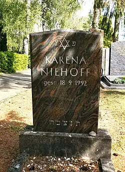 Karena Niehoffs Tochter aus einer Beziehung mit Egon Bahr,[1] Ariane Niehoff-Hack, beschrieb 2014 in ihrem Beitrag zu einem Ausstellungskatalog die Auswirkungen des Nationalsozialismus auf ihre Familie bis in die Nachkriegsjahrzehnte und auf ihr eigenes Leben.[2] Karena Niehoffs Großmutter hatte sich 1935 das Leben genommen, ihre Mutter Rose Niehoff überlebte das KZ Theresienstadt, deren beide Schwestern kamen im KZ Bergen-Belsen und im KZ Auschwitz um.