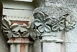 Die Vielzahl der Steinmetzarbeiten setzt sich an vielen Stellen der Kirche fort. Sehr naturalistisch ausgebildet ist auch die florale Ausstattung des Chorraums mit zahlreichen Rosenblüten sowie Eichen- und Weinblättern. Die Formen wiederholen sich als Kapitellschmuck an den beiden Portalen.
