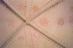 Immer noch rätselhaft sind die in den 1920er Jahren freigelegten magischen Zeichen an der Decke des Chores, die bereits zur Entstehungszeit der Kirche angebracht worden sein müssen. Es handelt sich sowohl um christliche als auch um heidnische Symbole, unter anderem um ein Pentagramm und eine Triskele. Sie sind um einen Schlussstein angeordnet und sollten vermutlich vor bösen Geistern schützen.[3]