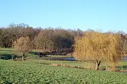 Das Landschaftsbild um Karken ist durch landwirtschaftliche Nutzflächen, aber auch Gewässer und Waldstreifen geprägt