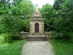 - Ein Familienmausoleum für die Familie Bittel – zuletzt mit Belegungsrecht für die Familie Wolter[Anm. 4] – wurde als Rundtempel und Urnengrabstätte gestaltet. Bei der Übereignung des Parks an die Stadt Worms blieb es davon ausgenommen und im Besitz der Familie.[18]