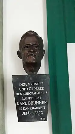 - ↑ Karl Brunner Europahaus, Europäische Föderalistische Bewegung, Franz Majcen (Hrsg.), Karl-Brunner-Europahaus, seit 7.7.1957, S. 5.