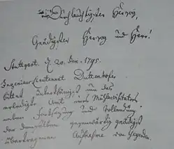 Die ehemalige Pfarrersfrau hatte neben Karl August Friedrich noch zwei weitere unmündige Kinder zu versorgen und wandte sich mit der Bitte um Unterstützung an den Herzog von Württemberg.
