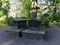 Doppelgrab in Form von zwei Sarkophagen auf dem Gartenfriedhof