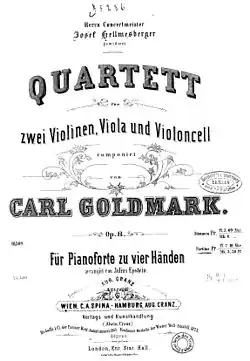 Zu Beginn der 1860er Jahre war Goldmark als Bratschist eines jungen Streichquartetts tätig. Diesem Quartett übergab Johannes Brahms sein später mehrfach umgearbeitetes Streichquartett in f-Moll zur Probe. In dieser Zeit entwickelte sich zwischen Brahms und Goldmark eine (nicht immer ganz problemlose) Freundschaft, die in zahlreichen Ausflügen etwa nach Baden oder Klosterneuburg und in einer gemeinsamen Italienreise zum Ausdruck kam. Goldmark gehörte daneben auch zu den regelmäßigen Gästen bei der Familie Johann Strauss.