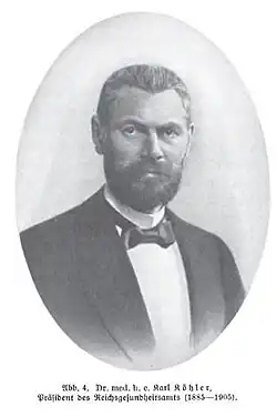 - Stürzbecher, Manfred: Aufgaben und Leistungen der öffentlichen Gesundheitspflege. Die Behördenchefs des Reichsgesundheitsamtes in Berlin 1876–1945 In: Bär von Berlin 25, 1976, S. 209–256 (Köhler: S. 225 ff.).