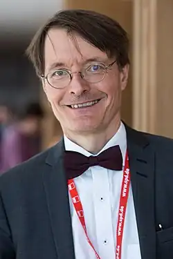 Karl Wilhelm Lauterbach (* 21. Februar 1963 in Birkesdorf, jetzt Düren) ist ein deutscher Gesundheitsökonom und Politiker (SPD). Der Mediziner ist seit Beginn der 16. Legislaturperiode im Jahr 2005 Mitglied des Deutschen Bundestages und war vom 8. Dezember 2021 bis zum 6. Mai 2025 Bundesminister für Gesundheit im Kabinett Scholz. Seit 21. Mai 2025 ist er Vorsitzender des neuen Bundestags-Forschungsausschusses.[1]
