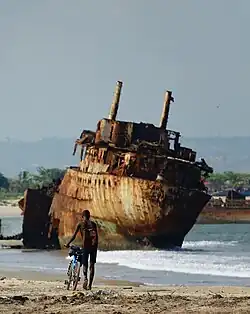 Die Karl Marx ist ein Frachtschiff, das am Santiago-Strand (Praia da Santiago) auf dem Schiffsfriedhof nördlich von Luanda gestrandet liegt und als Fotomotiv und Touristenattraktion bekannt ist.
