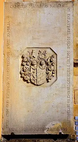 Auf dem Epitaph findet sich der Hinweis „[...] cum quo extincta illustrissima eijus familia“, übersetzt „[...] mit dem seine so bedeutende Familie ausstarb.“ Allerdings war die Linie Pfalz-Simmern im legitimen Mannesstamm mit dem Kurfürsten Karl II. von der Pfalz, dem Halbbruder von Karl Moritz, bereits 1685 ausgestorben.[4]