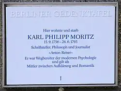 - Ute Tintemann, Christof Wingertszahn: Karl Philipp Moritz in Berlin 1789–1793. Wehrhahn, Laatzen 2005, ISBN 3-932324-30-7.