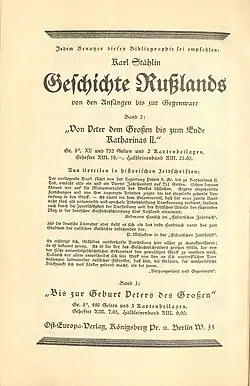 - Jacob v. Stählin. Historia, Leipzig 1920.
