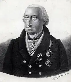 - ↑ Rudolf Graf von Stillfried-Rattonitz: Liste der Ritter des Königlich Preußischen Hohen Ordens vom Schwarzen Adler. V. Von Seiner Majestät dem Könige Friedrich Wilhelm III. ernannte Ritter, Nr. 556. Berlin, R. v. Decker 1871, S. 49 (uni-duesseldorf.de).