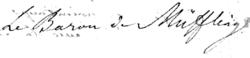 - ↑ Den Freiherren von Müffling wurde mit kgl. preuß. Erlaubnis vom 5. April 1878 die Fortführung des Freiherrentitels genehmigt.