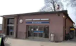 Der ehemalige erste Bahnhof wurde am 3. November 1882 eröffnet. Der hier beschriebene Bahnhof wurde 1932 eröffnet und verfügt über zwei Mittelbahnsteige und vier Gleise. Benannt ist der Bahnhof nach dem naheliegenden Schloss Karlberg. Es bestand die Möglichkeit an der etwa 500 m entfernten Station St. Eriksplan in die Gröna linjen der Tunnelbana umzusteigen.