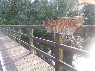 Doch zu dieser Zeit ahnt er nicht, dass genau an der Stelle seiner Hütte eine Brücke über den Kanal errichtet werden soll. Sie ist als Querungsmöglichkeit für NVA-Fahrzeuge vorgesehen, weil in dieser Gegend ein Manöver geplant ist. Als Karlemann dies bemerkt, wehrt er sich gegen das Ansinnen und verteidigt damit seine Unterkunft. Die Soldaten haben seine Hilfsbereitschaft nicht vergessen und sorgen dafür, dass die Brücke an einem anderen Ort gebaut wird. Sie wird aber seitdem als Karlemanns Brücke bezeichnet.