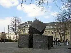 1970 ließ die Stadt Stuttgart zum 25-jährigen Nachkriegsjubiläum am Stauffenbergplatz gegenüber dem Karlsplatz, am Alten Schloss das Mahnmal für die Opfer des Nationalsozialismus aufstellen. Dabei handelt es sich um ein Ensemble aus vier schwarzen Granitblöcken – als Symbol der Schwere der NS-Zeit – des Oggelshausener Bildhauers Elmar Daucher. Das Mahnmal trägt ein Epigramm des deutschen Philosophen Ernst Bloch.