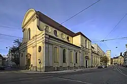 Die Karmelitenkirche (Karmeliterstraße 1) liegt am Promenadeplatz im Kreuzviertel der historischen Altstadt Münchens.