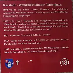 Geschichtstafel zu Karstadt in Hamburg-Wandsbek im Eingangsbereich des Kaufhauses
