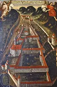 Von 1702 bis 1739, in der Wirkungszeit des aus Zwittau in Mähren stammenden Priors Joseph Kristelli von Bochau, wurde die barocke Bibliothek im Westteil des Südflügels des sog. Bibliothekshofes erbaut und der anschließende Westtrakt desselben Hofes für Bibliothekszwecke adaptiert: Vor allem die freskale Ausstattung durch den hochbedeutenden Prager Maler Wenzel Lorenz Reiner (1723 datiert, obwohl die archivalisch belegte Auftragserteilung und die Zahlungen erst von 1724 stammen), aber auch der Stuckmarmor und der Stuckdekor von dem Allgäuer Balthasar Haggenmüller (1724, schriftlicher Auftrag jedoch erst von 1725) und die ergänzenden Malereien in den Fensterlaibungen von J. G. Schreyer bilden einen signifikanten Akzent. Von 1742 bis 1746 erfolgte unter Prior Johann VIII. Jerumb (1739–1757) die Umgestaltung des Kircheninnenraumes mit Stuck und Fresken sowie hinsichtlich der Einrichtung.