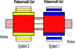 - ↑ a b c d e Carsten Fräger: Wicklung für den Läufer elektrischer Maschinen zur Kopplung zweier Felder verschiedener Polzahl. (Patentschrift DE19526440C2).