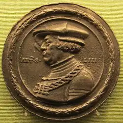 - ↑ Sein Grab- bzw. Gedenkstein in Bad Tölz nennt das Geburtsjahr 1475, eine Gedenkmünze aus 1526 aber das Jahr 1465.