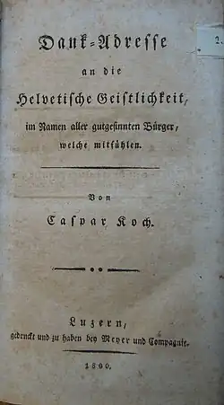 - Dank-Adresse an die Helvetische Geistlichkeit, im Namen aller gutgesinnten Bürger, welche mitfühlen. Luzern 1800.