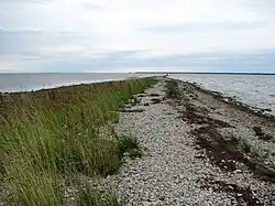 Südlich des Denkmals erstreckt sich die schmale Landzunge in die offene Ostsee, der Sääretirp. Andere Namen sind Kassari säär oder Orjaku säär.