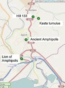 - ↑ DAS KASTA-GRAB. In: www./dimos-amfipolis.gr/τύμβος-καστά/. Archiviert vom am 29. November 2019; abgerufen am 8. März 2022. Info: Der Archivlink wurde automatisch eingesetzt und noch nicht geprüft. Bitte prüfe Original- und Archivlink gemäß Anleitung und entferne dann diesen Hinweis. (in griechischer und englischer Sprache)