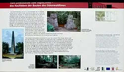 | Wp 10/14/[A 4] | „An der Döllchenschneise“ | Die Stelle des ehemaligen Holzturms[A 5] zeichnet sich durch den ihn umgebenden Ringgraben, in dem jahreszeitlich und witterungsbedingt gelegentlich Wasser steht, deutlich im Gelände ab. In diesem Bereich erfolgte durch die Kommission eine Aufmessung der Oberflächenstrukturen, von einer archäologischen Untersuchung wurde aber Abstand genommen.[11]
