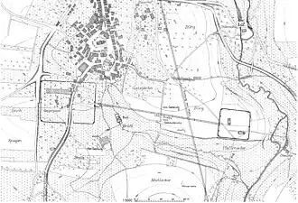 Südlich des Ostkastells wurden im Tannwald zwei, etwa 170 Meter südlich des Westkastells ein römischer Ziegelbrennofen ergraben.[39]
