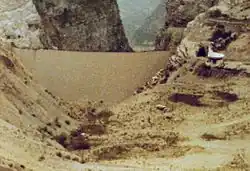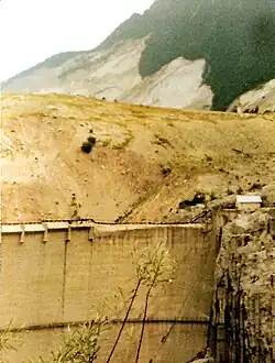 Das Aufstauen des Stausees Vajont führte zu einem Bergrutsch vom Monte Toc in den See. Dieser Bergsturz verursachte eine große Flutwelle, die sich über die Mauerkrone in das enge Tal ergoss und das Städtchen Longarone, die Ortschaften Pirago, Rivalta, Villanova und Faè vollständig zerstörte[1]. Bei der Katastrophe starben vermutlich mehr als 2000 Menschen.[2] Mehr als die Hälfte der Leichen wurde nicht gefunden. Die Staumauer blieb bei der Katastrophe weitgehend unbeschädigt und ist heute noch vorhanden, der See wurde allerdings nicht wieder aufgestaut.[3]