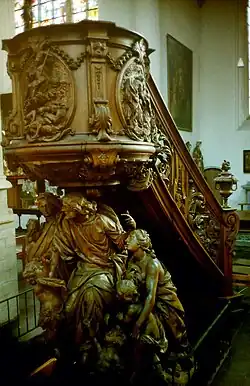 In der Kirche befinden sich eine kleine Kanzel aus dem 15. Jahrhundert und eine große spätgotische Kanzel, die von Albrecht Gelmers in der Zeit von 1532 bis 1548 angefertigt wurde. Im Chorgestühl sind Bilder der Apostel und Heiligen zu sehen. Gelmers stellte auch heidnische Szenen und moralisierende Sprüche dar. Es ist eine der letzten Stiftungen, in denen sich die bildliche Vorstellungskraft ausdrücken durfte; dies wurde 1563 vom Konzil von Trient verboten.