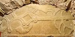 In der Kirche und im Kirchhof befinden sich trapezoide Grabplatten mit heidnischen Symbolen, die man ansonsten nur von den mittelalterlichen Kirchen und Kirchengärten auf Saaremaa und in Läänemaa (Westland) kennt. Von besonderem Interesse ist die von der Westwand zum Turm führenden in der Türöffnung liegende Grabplatte. Sie ist eine von zweien in Estland erhaltenen Grabplatten aus dem 12.–13. Jahrhundert, die Menschenfiguren darstellen. Die jüngste Grabplatte steht an der Wand neben dem Haupteingang. Ihr Text lautet: „Hier hat sich Johannes aus Gotland zur Ruhe gelegt, betet für ihn“, was auf den Schöpfer der Wandmalereien hinweisen könnte.