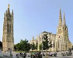 Dem Chor auf südlicher Seite ist der isoliert stehende Glockenturm Tour Pey-Berland vorgelagert, der aus den Jahren 1440–66 stammt und nach dem Bischof Pey-Berland benannt ist. 1863 wurde der 50 Meter hohe Turm durch die Marienstatue Notre-Dame d'Aquitaine erhöht.
