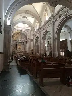 Das durch kannelierte Pfeiler und Pilaster geprägte Langhaus der Kirche ist dreischiffig mit erhöhtem und eigenständig durch hochliegende Fenster belichtetem Mittelschiff. Alle drei Schiffe sind kreuzrippengewölbt; die einzelnen Joche werden durch Gurtbögen voneinander getrennt. Über der Vierung schwebt eine auf einem durchfensterten oktogonalen Tambour ruhende, reich verzierte Kuppel mit aufsitzender, aber nicht belichtender Laterne.