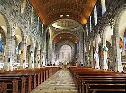 Die Kathedrale von Galway hat die Form einer klassischen Basilika auf Kreuzgrundriss. Das Portal flankieren zwei kleine Glockentürme, über der Vierung erhebt sich eine mächtige oktogonale Kuppel. Prägend für den Außen- und Inneneindruck ist der grauschwarze unverputzte Werkstein. Langhaus und Chor decken flache kassettierte Tonnengewölbe.