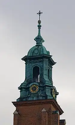 Da die beiden Westtürme nach den Zerstörungen des Gebäudes für ein schweres Geläut nicht mehr standsicher waren, veranlasste der Kirchenrat den Bau eines gesonderten Glockenturmes, der 1975 eingeweiht wurde. Hierher kamen die erhaltenen Glocken, darunter die zur Gusszeit viertgrößte Glocke in Polen, die St. Adalbert aus dem 18. Jahrhundert.[5]