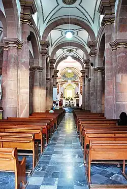 Die Architektur der Kirche zeigt Stilformen des Klassizistischen Barock. Das dreischiffige Innere ist maximal 45 m lang, 15 m breit und ca. 11 m hoch; es ist eher schmucklos und streng. Über der Vierung erhebt sich ein durchfensterter Tambour mit ca. 20 m hoher abschließender Kuppellaterne.