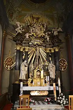Jozef Holzinger schuf das Chorgestühl, das 1771 fertiggestellt wurde. Vergoldete Reliefs zeigen Szenen aus der Legende Johannes des Täufers. Hier befinden sich auch die Kathedra und eine Statue des seliggesprochenen Bischofs Anton Martin Slomšek. Er verlegte den Bischofssitz von St. Andrä nach Maribor. Sein Grab befindet sich in der barocken Kreuzkapelle.