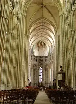 Knapp 50 Jahre nach dem Bau des Chores war es notwendig, einen Neuaufbau durchzuführen, da die zu schwachen Fundamente unter dem ursprünglichen Chor sich weiter setzten. Der heutige Chor im hochgotischen Stil wurde zwischen 1253 und 1278 von Gautier de Vainfroy errichtet, der zuvor auf der Baustelle der Kathedrale von Évreux gearbeitet hatte. Um das Problem der Stabilität des Chores zu lösen, verwendete Gautier Varinfroy eine bereits für die Kathedrale von Rouen angewandte statische Lösung.