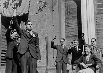 Alles änderte sich im Jahr 1944. Zwar waren die nationalistischen studentischen Korporationen nicht verboten worden, wurden jedoch Opfer von Repressionsmaßnahmen. Die Universität gründete als Alternative für GSV einen neuen Dachverband um auch die Vereine und Verbindungen zu beherrschen. Diese Nationale Studentengroepering (NSG) (Nationale Studentengruppierung) war in Gegensatz zu älteren Verbänden wie die AVHV, GSC und GSV belgisch-loyal, eher freisinnig und stand in gutem Verhältnis mit Professorenschaft und Rektor. Im Jahr 1944 gründeten katholische flämische Studenten, mit Hilfe von KVHV-Leuven, KVHV-Gent wieder als antibelgische, flämisch-nationale und katholische Verbindung. Professor Corneel Heymans hatte den Vorsitz des Verwaltungsrats.[6]