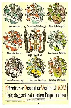 Der KDV (Katholischer Deutscher Verband farbentragender Studentenkorporationen) ist ein Korporationsverband von heute sieben Verbindungen in Deutschland, der 1891 gegründet wurde. Zwischen 1909 und 1912 sind alle Verbindungen des KDV, der auch „kleiner CV“ genannt wurde, in den „großen CV“ eingetreten. So wurde aus dem vormals eigenständigen Verband eine inoffizielle, doch nach innen und außen geschlossene Untergliederung des CV, wobei der KDV noch heute seine innere Souveränität hoch schätzt.[1]