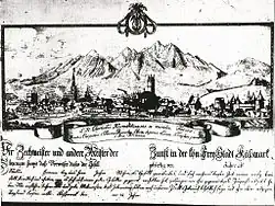 Käsmark wurde im 13. Jahrhundert von den Zipser Sachsen durch Zusammenschluss eines slowakischen Fischerdorfs, einer ungarischen Grenzwache und einer deutschen Siedlung gegründet. 1269 wurde der deutschen Siedlung das Stadtrecht verliehen und 1380 stieg sie zu einer königlichen Freistadt auf (die Privilegien einer königlichen Freistadt wurden 1655 wieder bestätigt). Die wirtschaftliche Entwicklung wurde durch weitere Privilegien begünstigt: 1411 erhielt die Stadt das Fischereirecht im Fluss Poprad, 1412 Befreiung von Zöllen, 1438 niedere Gerichtsbarkeit und 1463 ein eigenes Wappen. Käsmark war neben Leutschau und Kaschau einer der wichtigsten Handelsplätze des Königreichs Ungarn. 1433 (nach anderen Quellen) erhielt sie das Lagerrecht, das aber wegen Streitigkeiten mit Leutschau umstritten war, bevor es 1558 definitiv an Leutschau verliehen wurde.[5] Handwerke und Zünfte waren ebenfalls von großer wirtschaftlicher Bedeutung. Seit 1440 hatte auch der Graf der Zipser Sachsen in Käsmark seinen Sitz, in diese Zeit fällt auch der Bau der Stadtburg 1463. 1530 kam die Stadt vorübergehend in die Gewalt Johann Zápolyas, später war sie durch Abhängigkeit gegenüber den Geschlechtern Łaski sowie Thökoly. Käsmark sank zu einer Untertanenstadt herab und konnte sich erst 1651 vom Frondienst gegen eine Zahlung von 210.000 Gulden freikaufen. Im Jahr 1660 wurde Käsmark als sechste Mitgliedsstadt in die Pentapolitana aufgenommen, ein Städtebund königlicher Freistädte in Oberungarn.[6] In den folgenden antihabsburgischen Standesaufständen stand Käsmark auf der Seite der Thököly- und Rákóczi-Aufstände, wurde 1709 nach einer Belagerung durch eine kaiserliche Armee eingenommen, anschließend wurden der Stadtrichter Jakob Kray sowie je ein Senator und Zunftmeister als Rebellen und Ketzer hingerichtet. Der kurz folgenden Pest erlagen 1285 Einwohner, damals ein Drittel der Gesamtbevölkerung.[7]